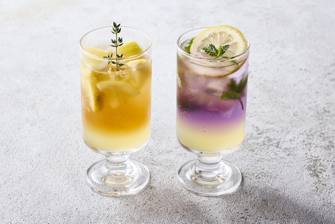 レモネードティーソーダ(写真左、648円)、パープルレモネード(写真右、648円)