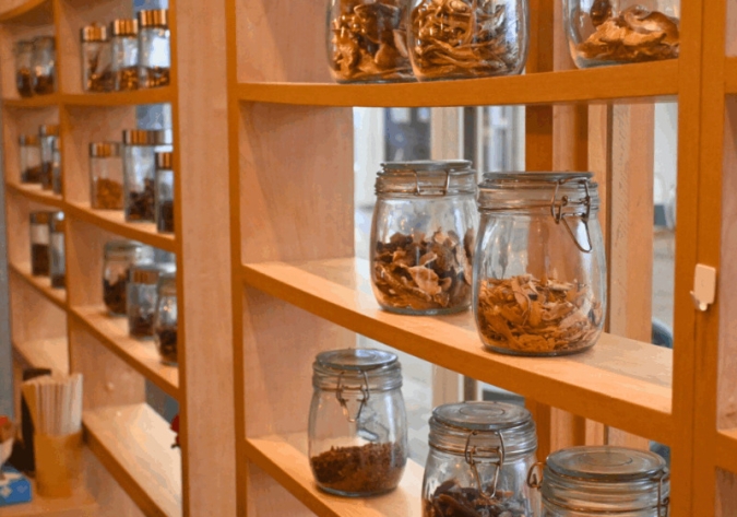 壁際に並んでいる調味料は実際に使われているもので、見せる収納としても映えてますね〜。
