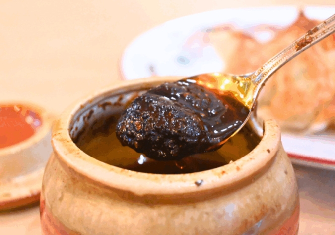 手作りの特製ラー油でした。見た目は控えめなんですが、これがなかなかの強者(つわもの)でして……。