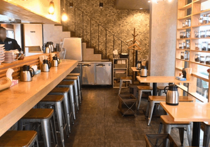店内はカウンター席とテーブル席が数席ずつの、こぢんまりとした空間。