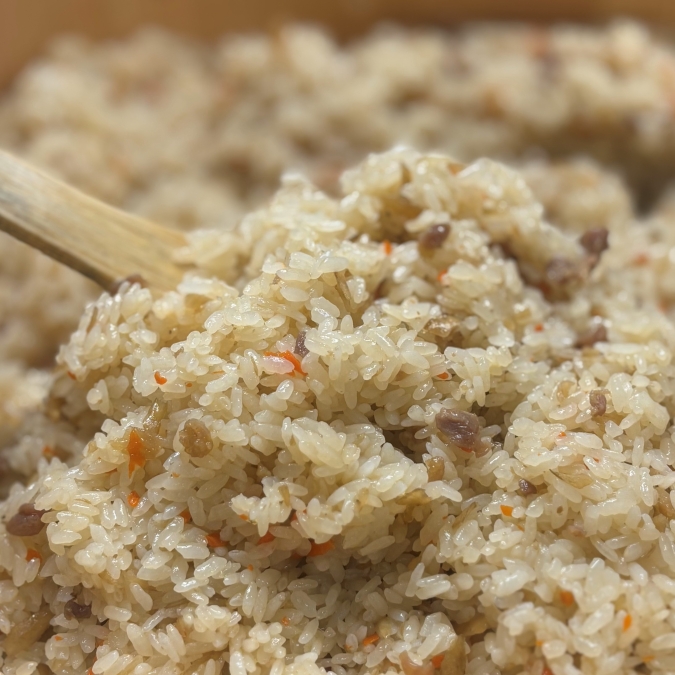 鶏の旨味たっぷりのかしわ飯が自慢の『博多 明喜堂』。秘伝の味を活かした鶏団子や唐揚げ、焼き鳥風総菜など、鶏総菜がずらりと並びます。