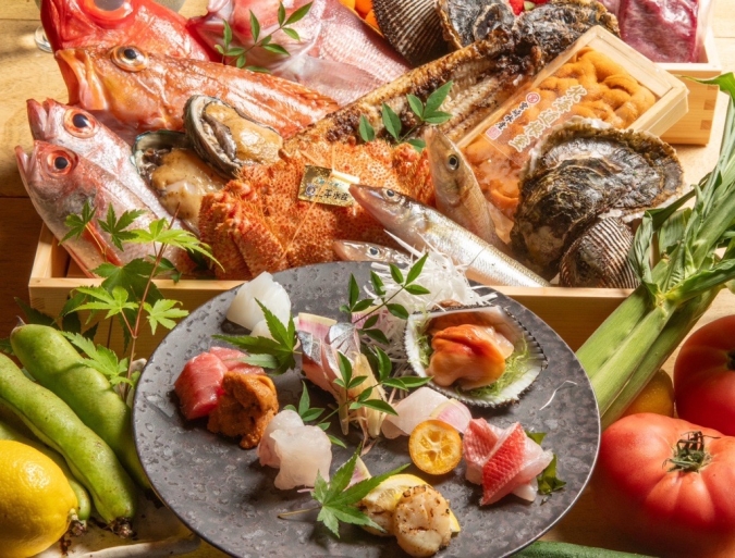 仲卸直営だからこそ実現できる圧倒的な鮮度と価格がうれしい! 九州の恵みを活かした料理と、厳選した日本酒・焼酎で心も体も満たされる時間を楽しめます。