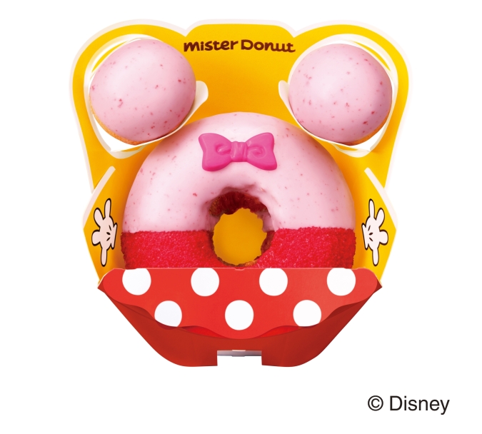 『ポン・デ・スマイルストロベリー<ミニーマウス>』(テイクアウト216円、イートイン220円)は、もちもち食感のポン・デ・リング生地にストロベリーチョコをコーティング。ミニーマウスデザインのパッケージもおしゃれです。