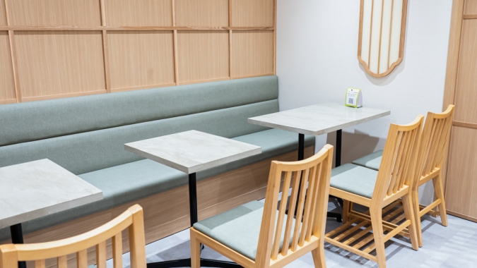 テイクアウトだけでなく、ゆったりと味わえるイートインスペースも完備されています。