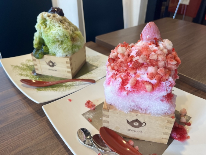 いちごと抹茶の2種!どっちも食べたいふわふわ「かき氷」♡