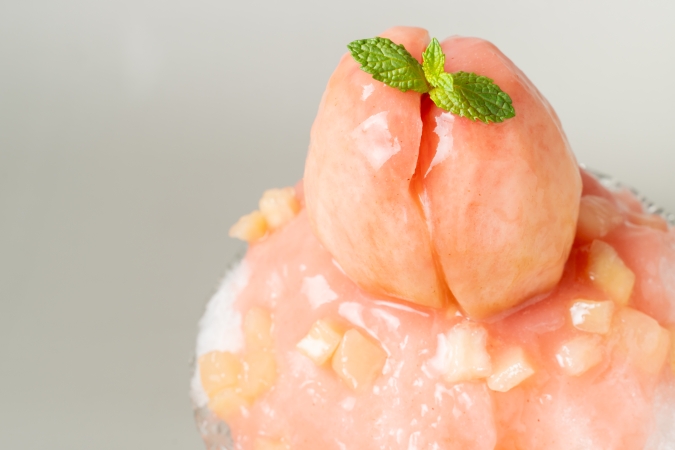 中からクリームがとろ~り♡丸ごと桃の贅沢かき氷が人気店に登場(福岡市中央区)