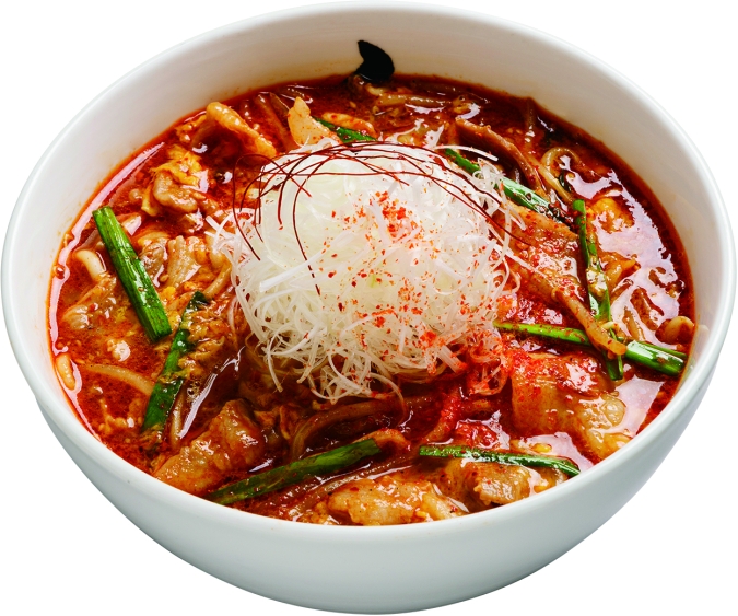 豚バラ、ニラ、もやし、溶き卵などの具材と、もちもち食感の米粉麺99麺が織りなす、辛さと旨さの絶妙なバランスをぜひ体験してください。