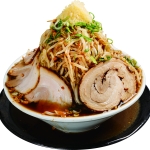 豚バラ1本がど〜んとのった『ガッツリ濃厚味噌じろう』(1,200円)が登場。チャーシュー、もやし、キャベツ、ニンニク背脂も豪快にのっています。