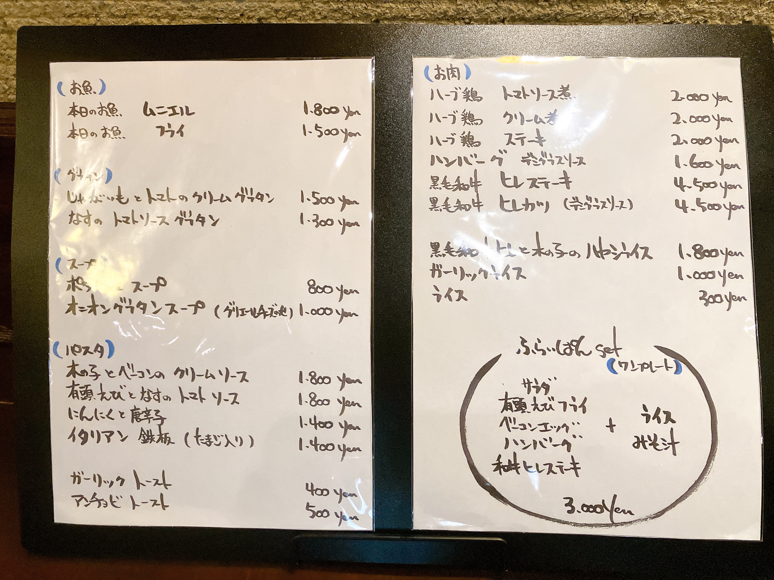 店名の『ボン・ふらいぱん』にちなんで、店内のあちこちにフライパンが飾られていましたよ♪