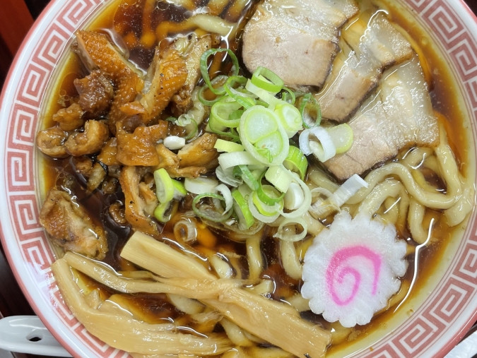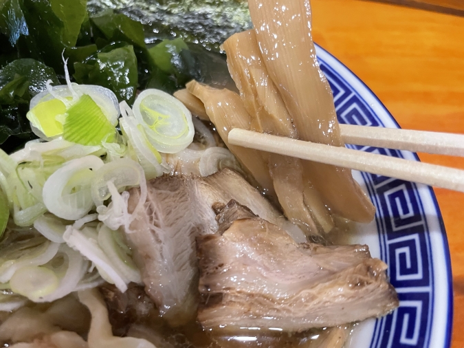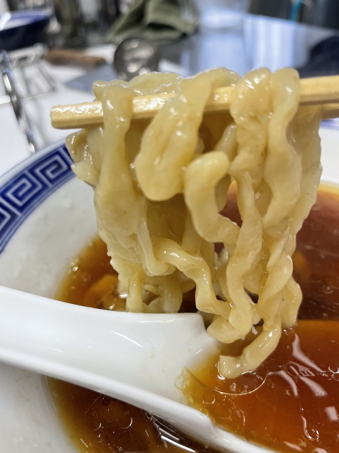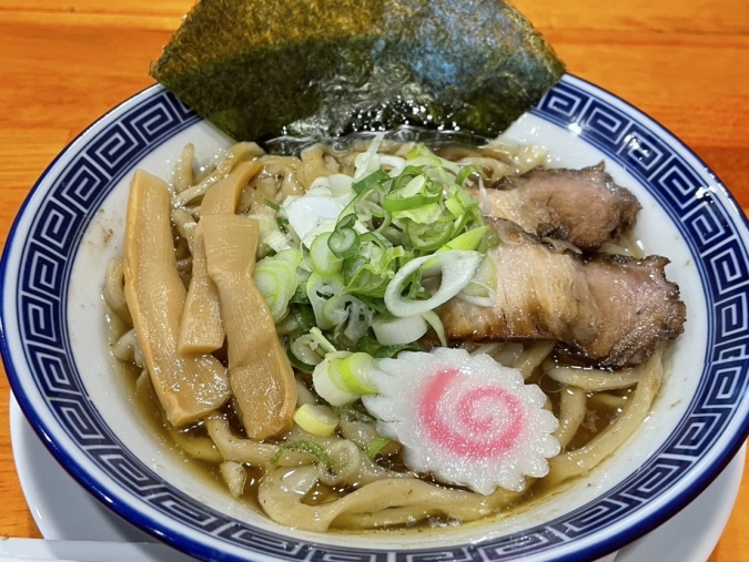 鶏ガラをベースにしたスープに、煮干しの風味がふんわりと重なり、きりっとした醤油の味わいが引き立ちます。特注の極太平打ち麺とスープがよく絡み、食べ進めるほどに旨味が広がる一杯です。