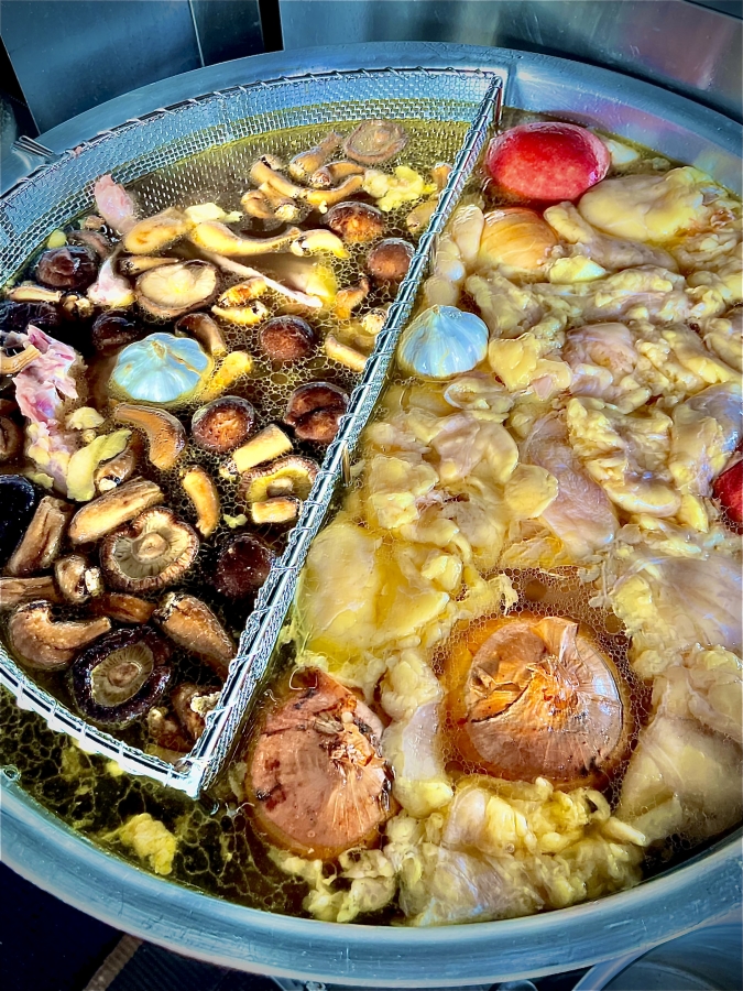 表面を覆う鶏脂(チーユ)は、毎朝鶏の皮から抽出しているのだとか。