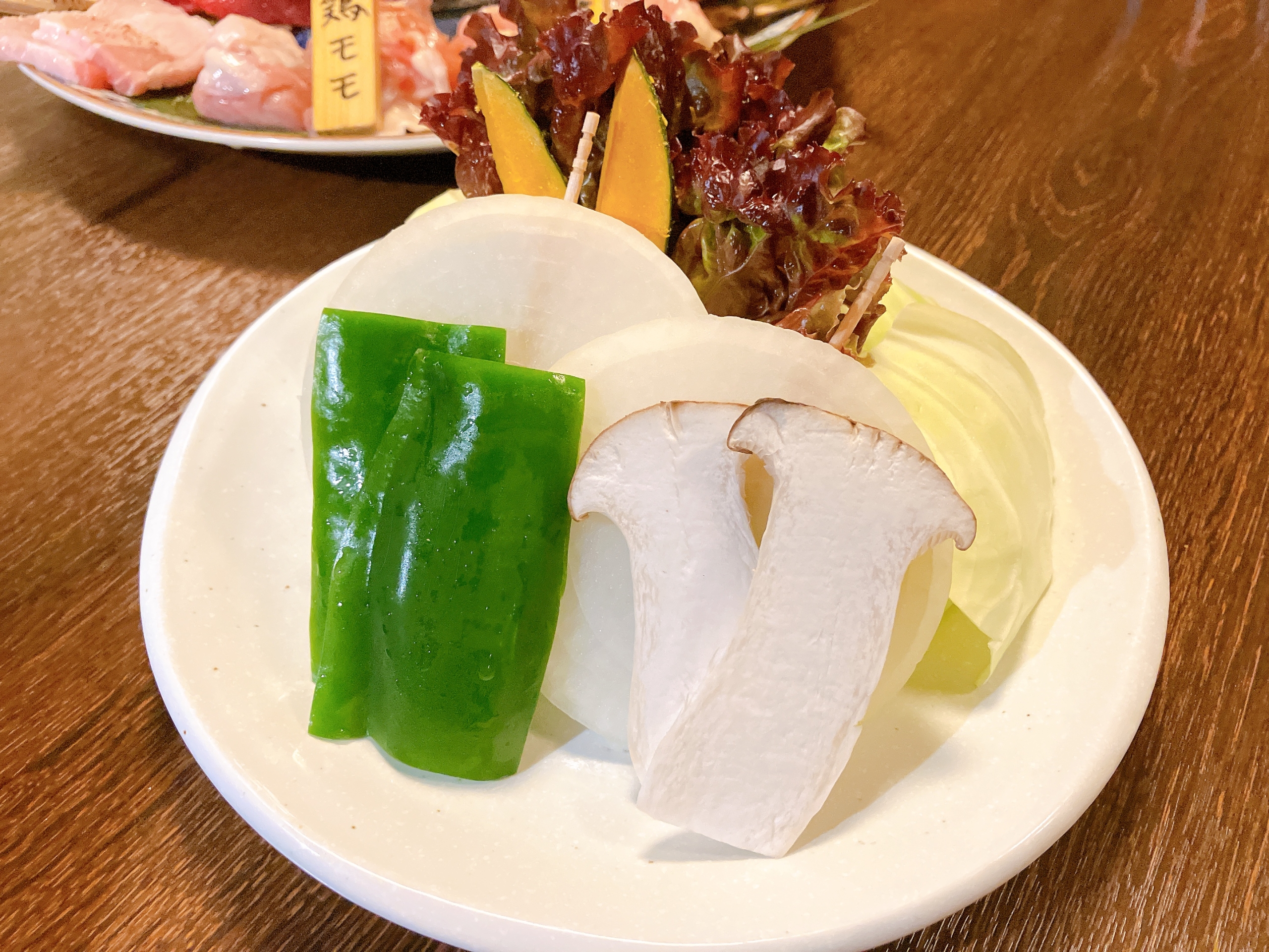 キャベツや玉ねぎなどの『焼き野菜盛り』や『わかめスープ』もセットで付いています。