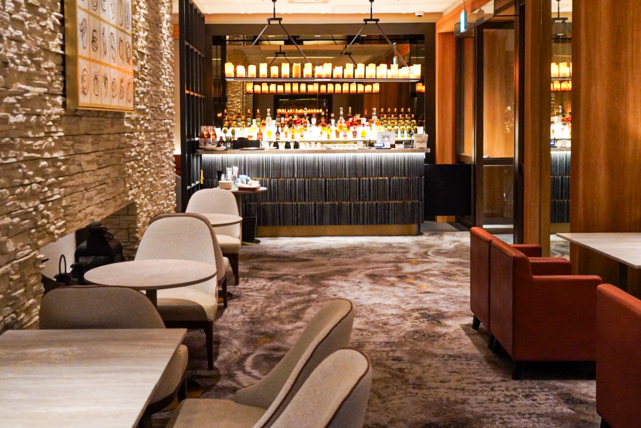 店内は、木目と石材で装飾されたスタイリッシュな空間。都会の喧騒を忘れさせる、上質で大人な雰囲気を堪能できます。