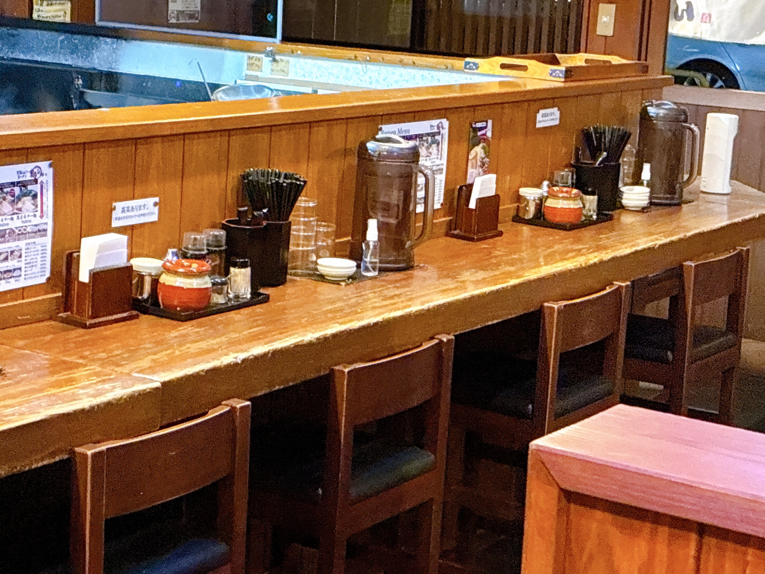 L字型のカウンター席とテーブル席があり、1人でも利用しやすいですよ。