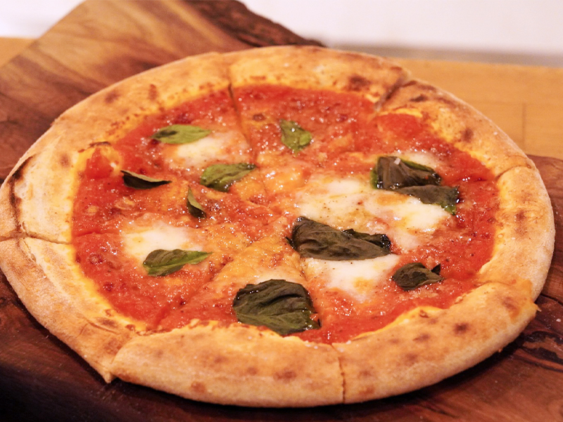 濃厚なトマトソースと国産のフレッシュモッツァレラチーズ、香り高いバジル、香ばしい生地、それぞれのおいしさをダイレクトに感じられます。