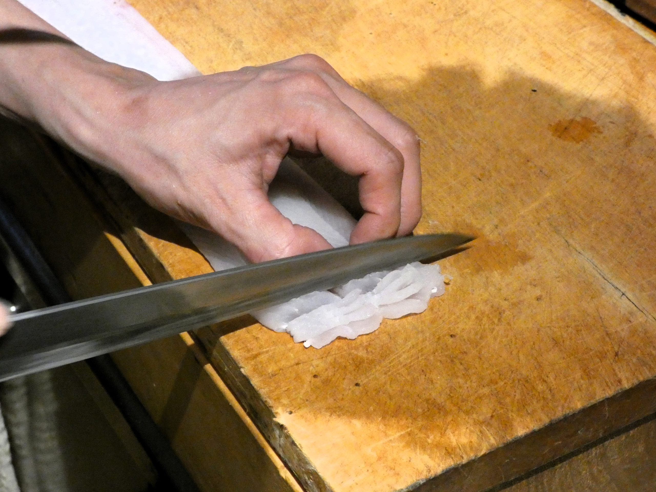 魚料理が自慢の高砂にある人気居酒屋『寅寅寅(とらさん)』で8年間修業し、柳橋連合市場の鮮魚店『高級鮮魚 いと嘉』で仕入れを学んだ経験を活かし、毎朝自ら長浜鮮魚市場で旬の魚を厳選。