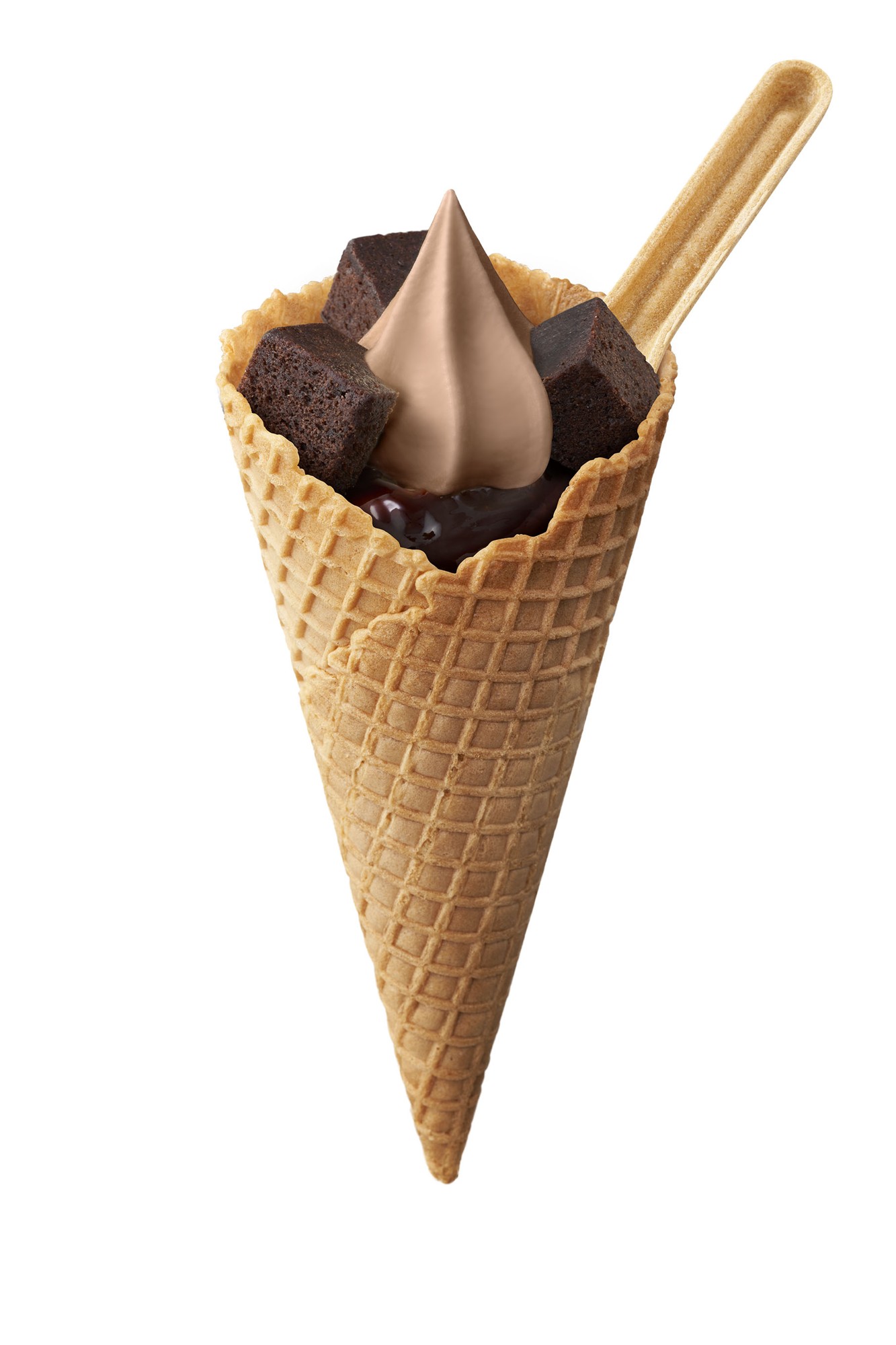 今年はそんな「60DAYSサステナブルチョコ」のカカオアロマの特長である、フルーティーさをより際立たせ、さらに香り高いソフトクリームに。『プレミアムソフト‐ごほうびショコラ‐』は、さらにチョコソースとガトーショコラをトッピングした、チョコ好き必食のスイーツです!