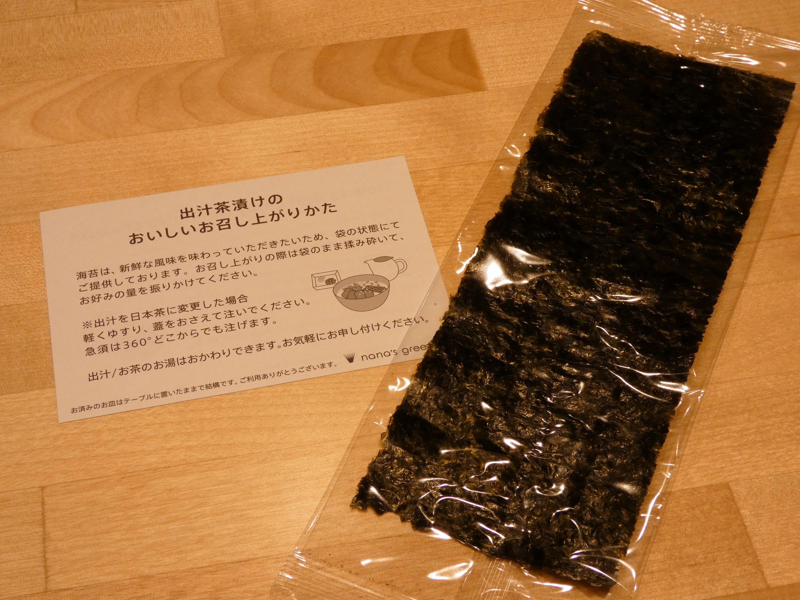 出汁は、日本茶(宇治煎茶/オーガニック煎茶/ほうじ茶/玄米茶)にも変更可能ですが、香り豊かな出汁が圧倒的に人気なんだそう。