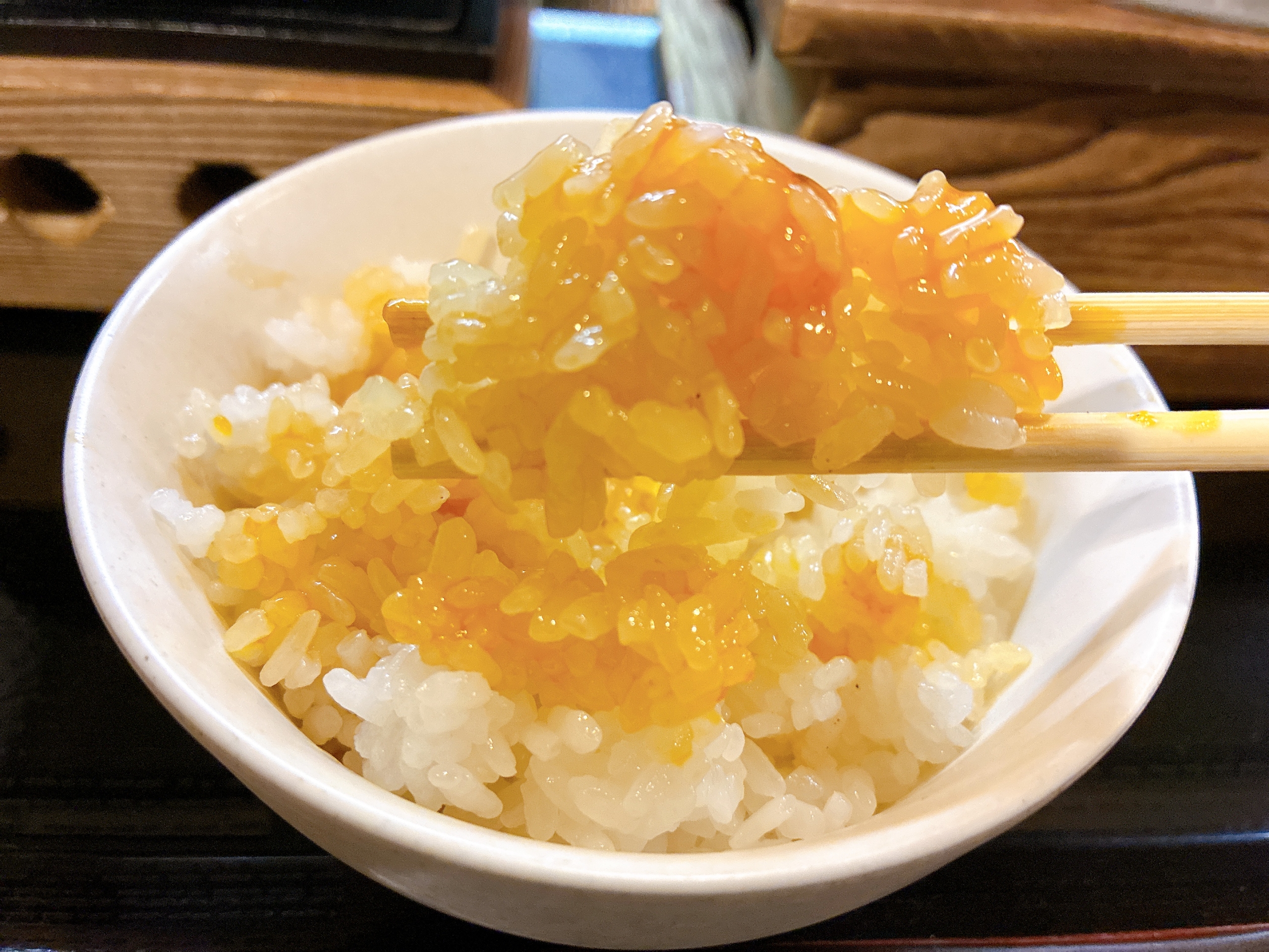 肉の旨みが溶け出した卵黄と割り下は……ご飯にかけて、卵かけごはんにして食べるのがオススメ! かき込みたくなるおいしさで、〆にもぴったりです♡