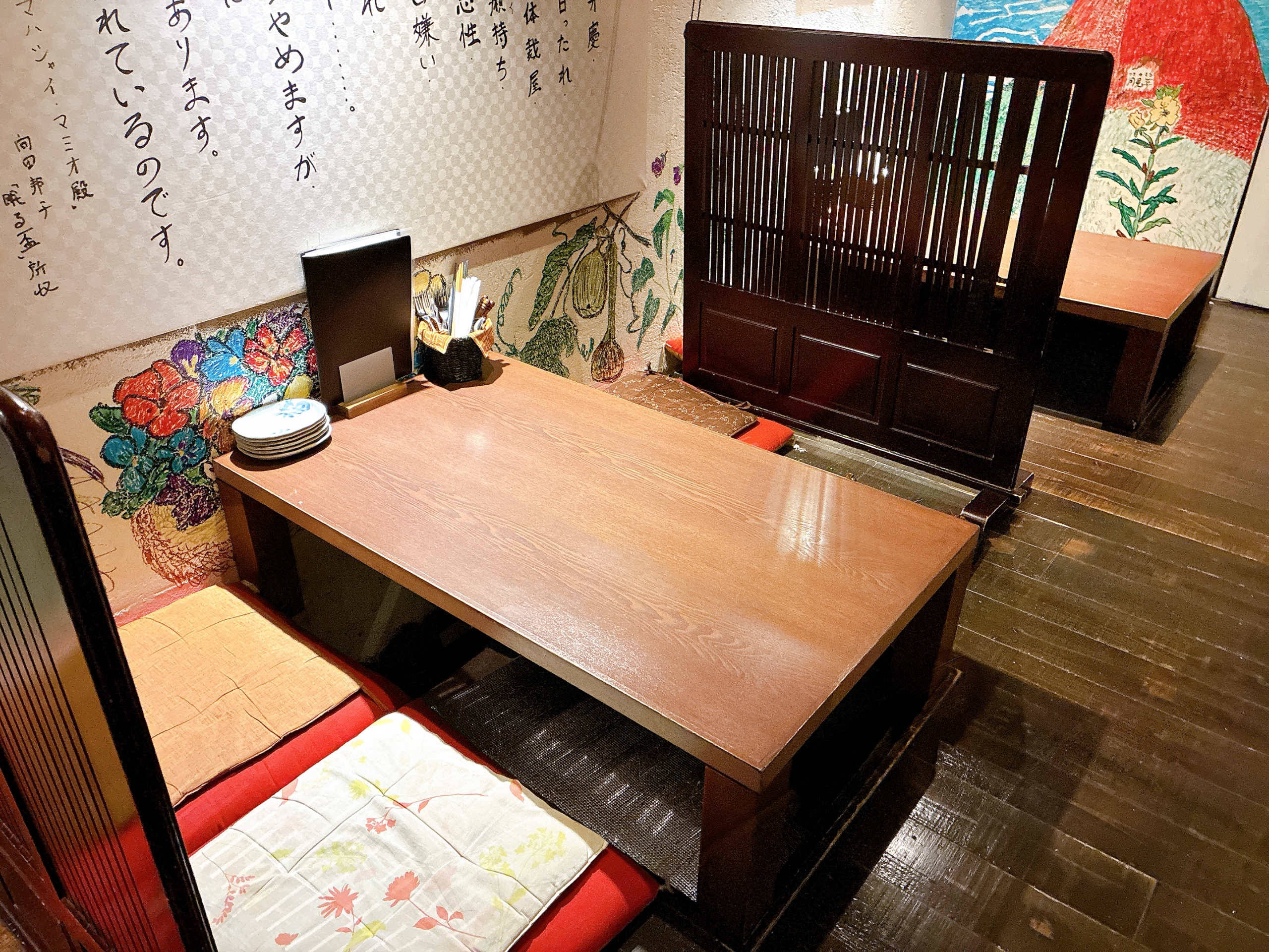 掘りごたつのテーブル席とカウンター席合わせて16席ほどで、こぢんまりとしていてアットホームな雰囲気。私が伺った日は寒かったですが、店内は暖かく、ひざ掛けまで用意してくださる優しい気配りにほっこり♡