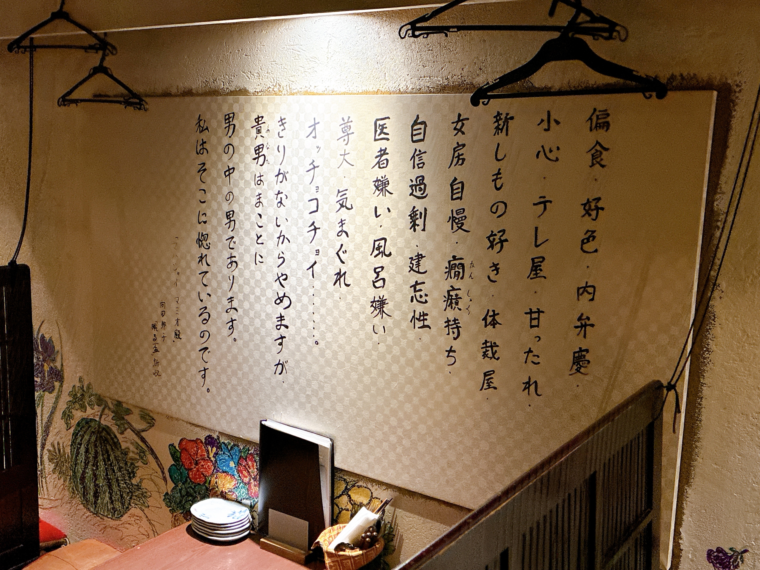 壁には店主さんのアートや写真が飾られていて、とってもオシャレ! 店主さんお気に入りだという小説の一節なんかもあり、待ち時間も雰囲気が楽しめて、特別な時間が過ごせますよ♪