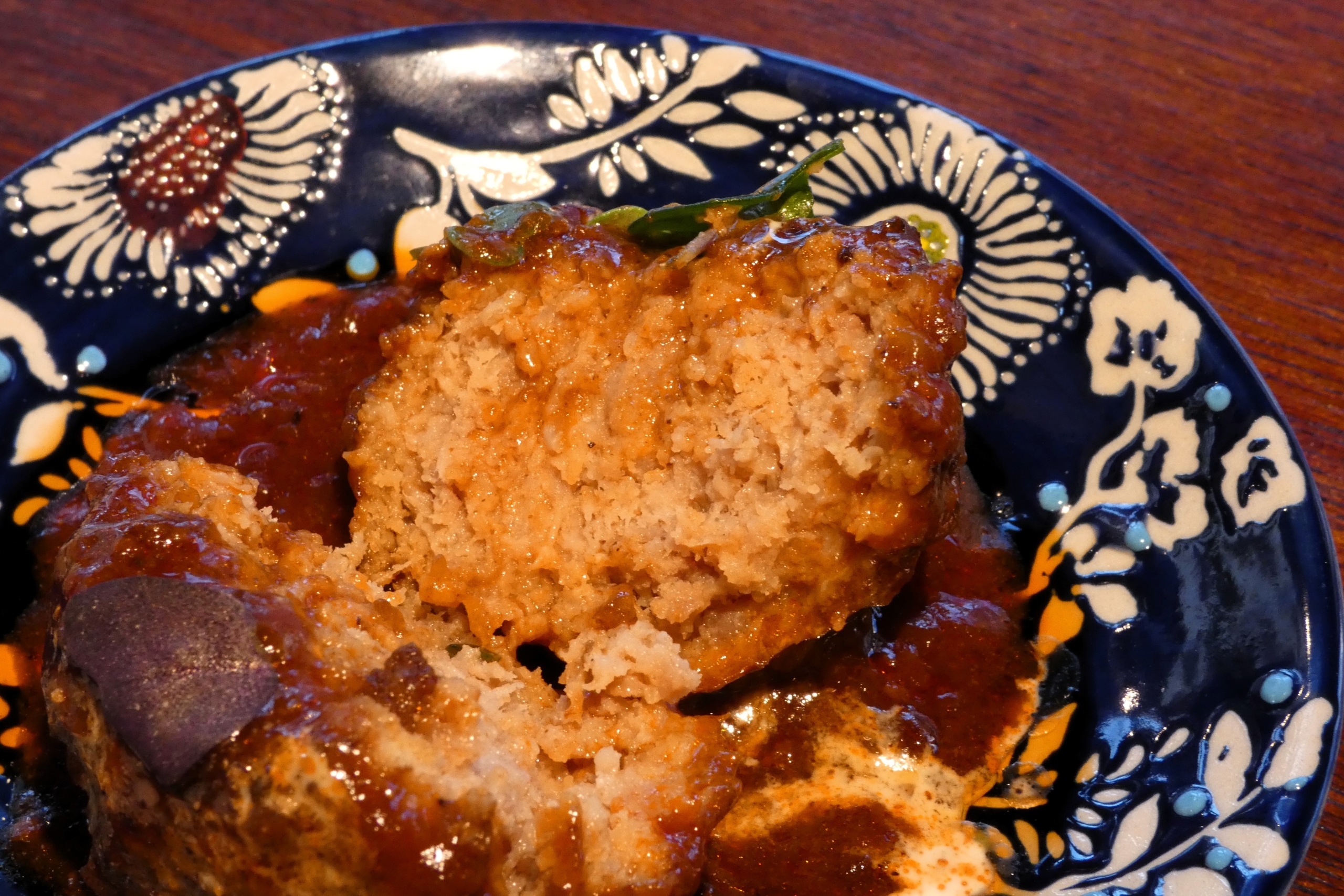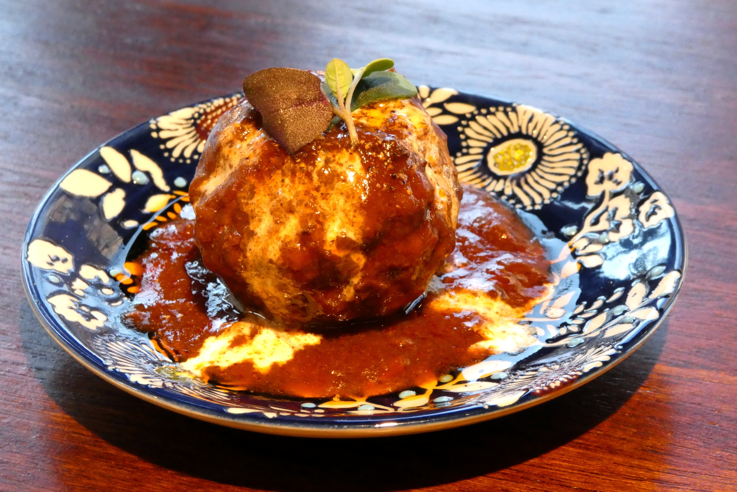 肉肉しい食感の肉団子に、濃厚なボロネーゼソースをたっぷりとかけた一品。噛むほどに旨みが広がり、深みのある赤ワインともよく合います。