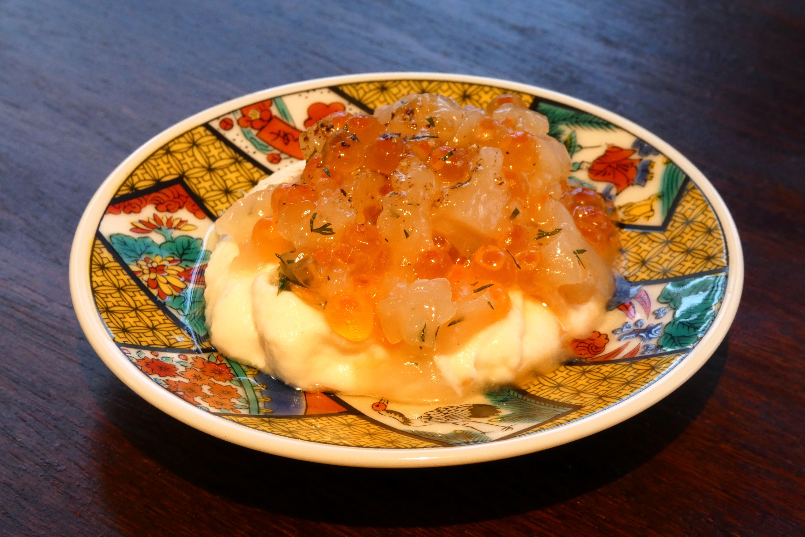 まずは、『ホタテといくら×カリフラワーソース』(495円)。