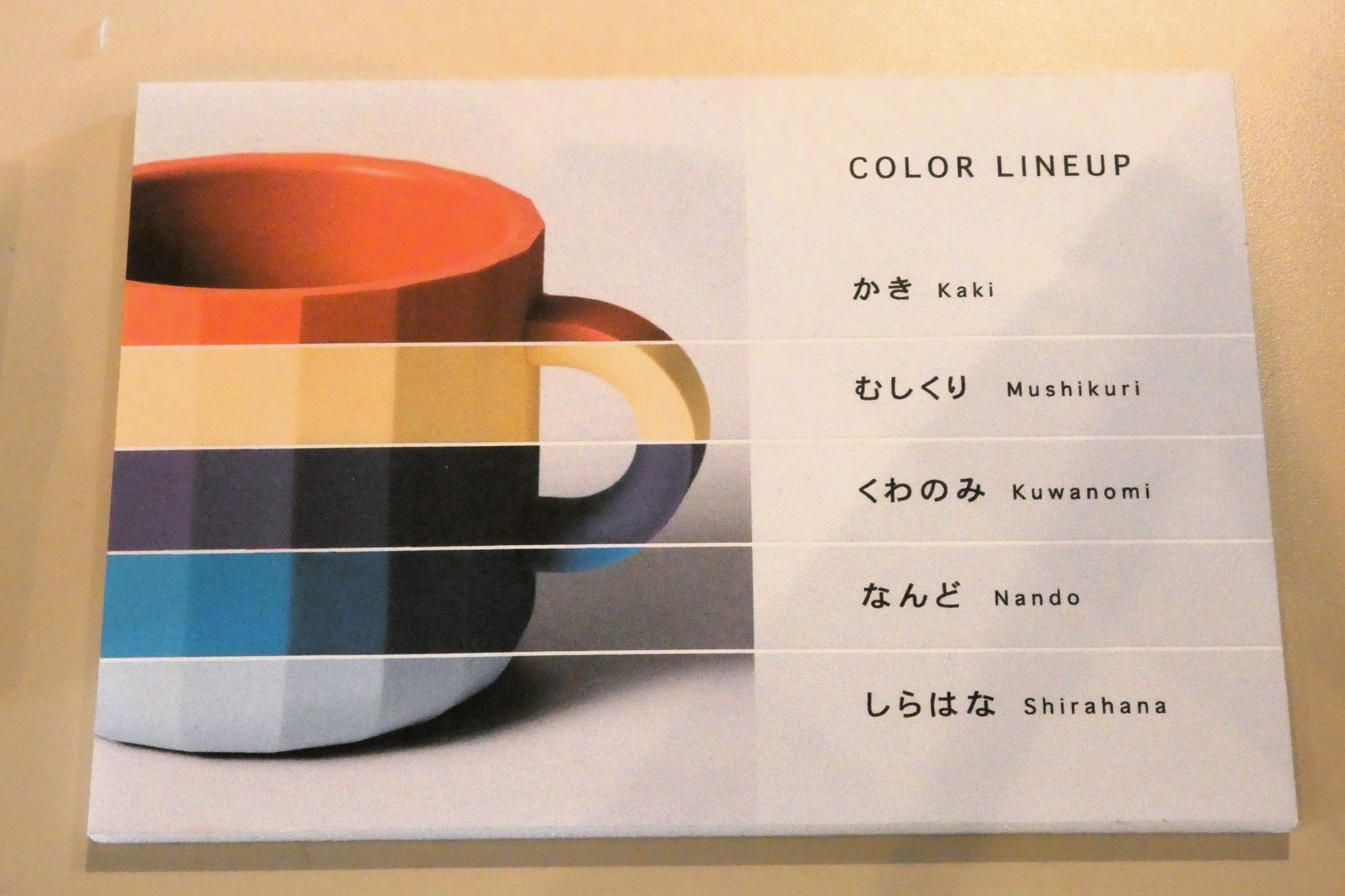 目を引くのは、やわらかさと鮮やかさをあわせ持つカラー展開。自社で調色しているという色味は、かき、むしくり、くわのみ、なんど、しらはななど、自然を思わせるやさしい名前が付けられています。