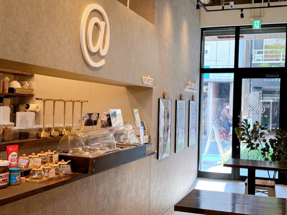 地下鉄・赤坂駅から歩いて5分ほど、警固交差点のすぐそばに位置する『@atmark cafe福岡店(アットマークカフェ)』。大阪発の人気アサイーボウル専門店です。