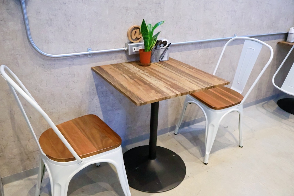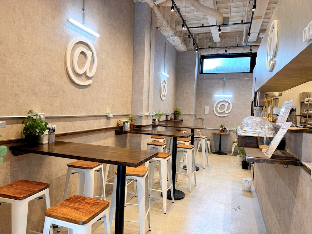 スタイリッシュな外観。一歩中へ入ると、コンクリートを基調とした現代的で奥行きのある空間が広がります。かわいらしいアットマークのモニュメントが置かれているなど、どこを切り取っても写真映えも抜群!