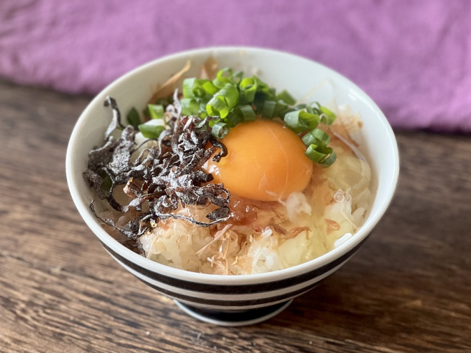 1:塩昆布にごま油がピッタリ!「ごま油風味の塩昆布卵かけごはん」