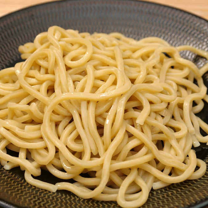 むっちりとした太麺は、しっかりと小麦の風味があってほのかな甘味があります。しっかりした噛みごたえがある食感、つるりとした喉越しも最高!