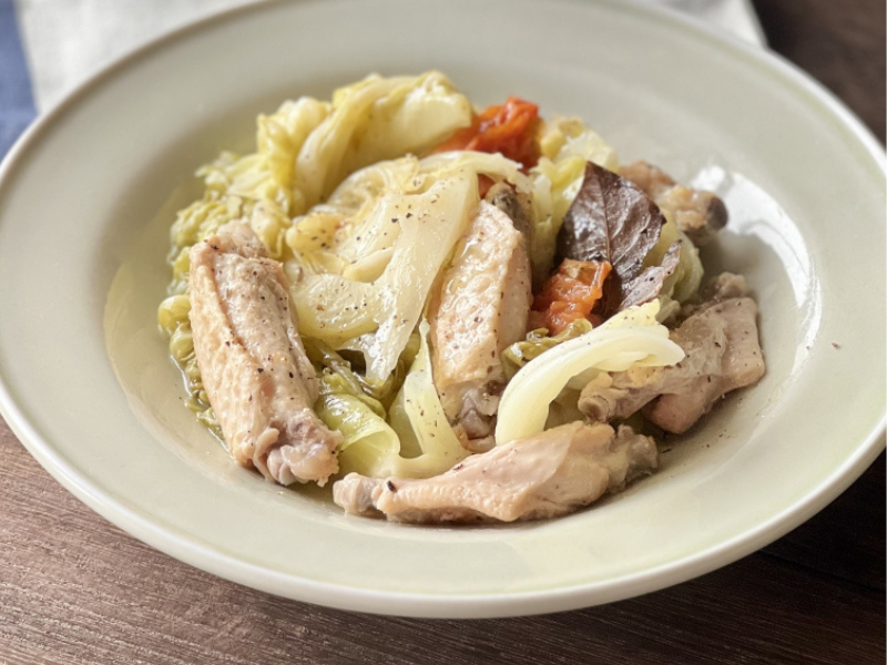 1:調味料は塩だけ!素材のうまさがご馳走に「春キャベツと手羽中のくたっと煮」