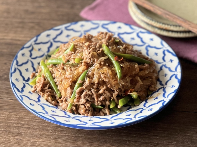 1:ワンパンでらくちんおかず「いんげんと春雨のピリ辛炒め」