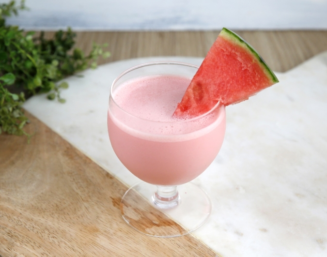 ピンク色がかわいい、さっぱり爽やかな味わいのスイカのスムージー。スイカは90%以上が水分なので、さらっとしていて飲みやすいのも魅力です。