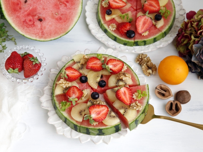 パーティーにもぴったり!華やかな見た目の「スイカピザ」