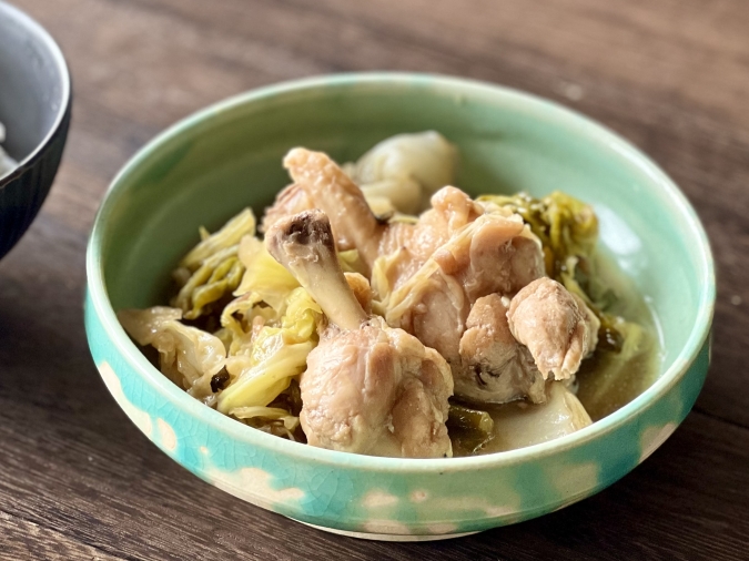 2:鍋にお任せ、ほったらかしで完成「キャベツと鶏手羽元の梅煮」