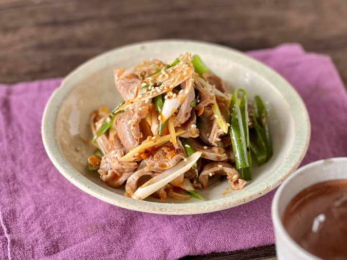 2:箸が進む食感!「砂肝とねぎのピリ辛和え」