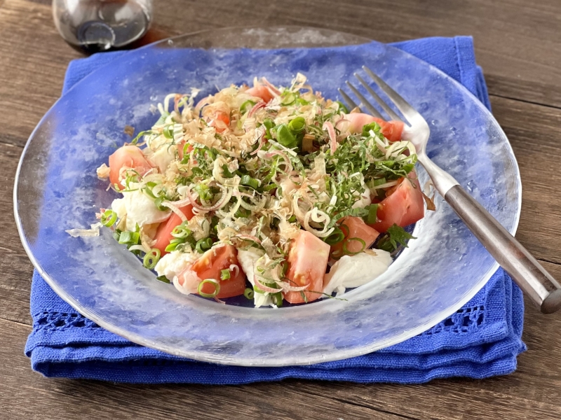 1:たっぷりの和の薬味と調味料で「和風カプレーゼ」