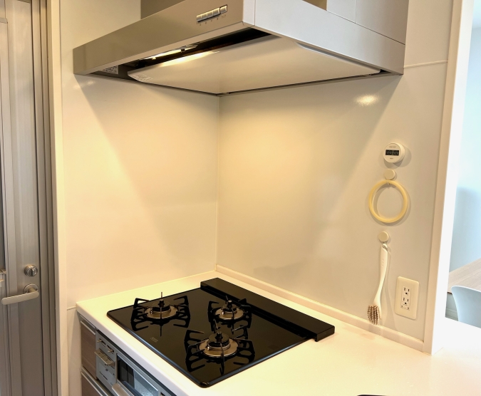 確かにコンロ周りに料理器具を掛けているとさっと使うことはできたのですが、実は、とても掃除しにくいと感じていました。