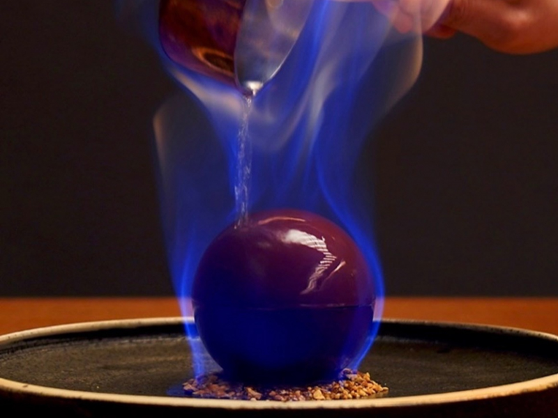 青い炎がチョコレートを包み込む、大丸福岡天神店限定のデセール『スフィアフラム ドリンクセット』が各日40セット限定で登場。中からとろけ出す自家製バニラアイスと、長崎県諫早市にある『長崎SAKAMOTO果樹園』の「特選」青島みかんのおいしさが広がり、五感で味わえる特別な一皿です。