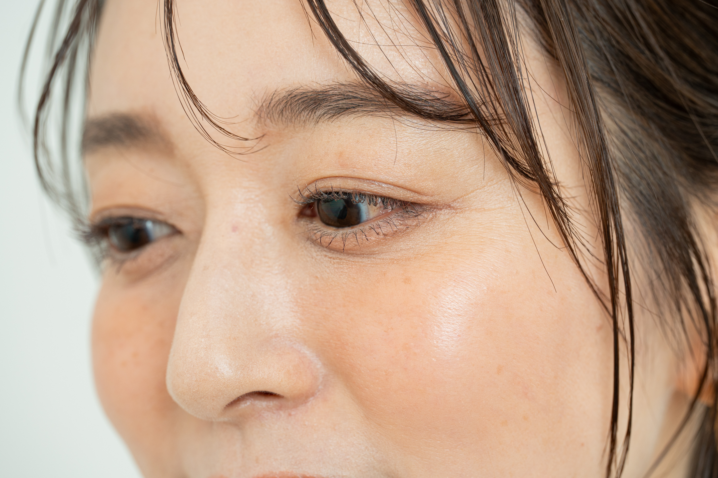 「まぶたのブラウンはあえて薄く。目元のバームって難しい印象があるかもしれませんが、シアーな色合いで発色がいいのでとても使いやすいです。くすまず、絶妙な奥行きが生まれます。」
