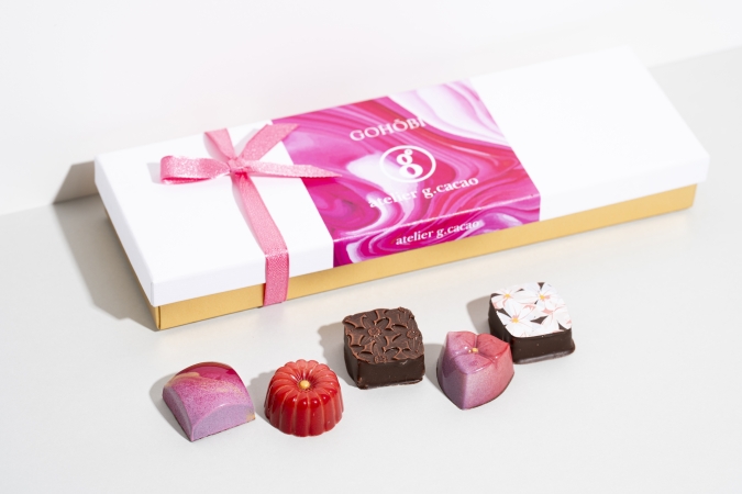2026年版は、5つそれぞれ産地別のカカオを使用し、いちごの魅力を全面に出した味わい。噛んだ瞬間のふわっと広がる香りにもこだわりました。